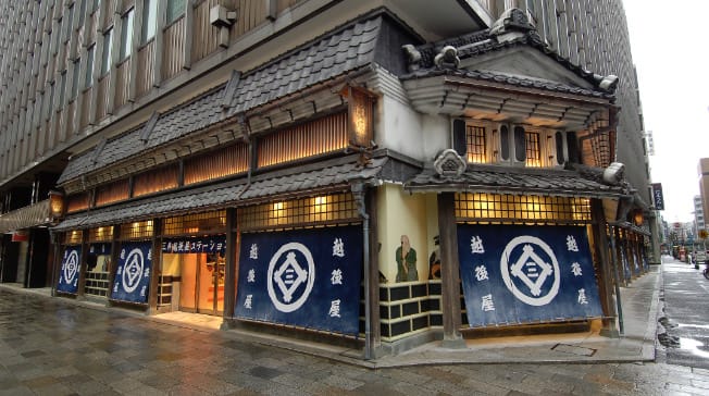 在日本橋市街上重現江戶時代的「越後屋和服店」外觀、充滿魅力的資訊傳播據點。